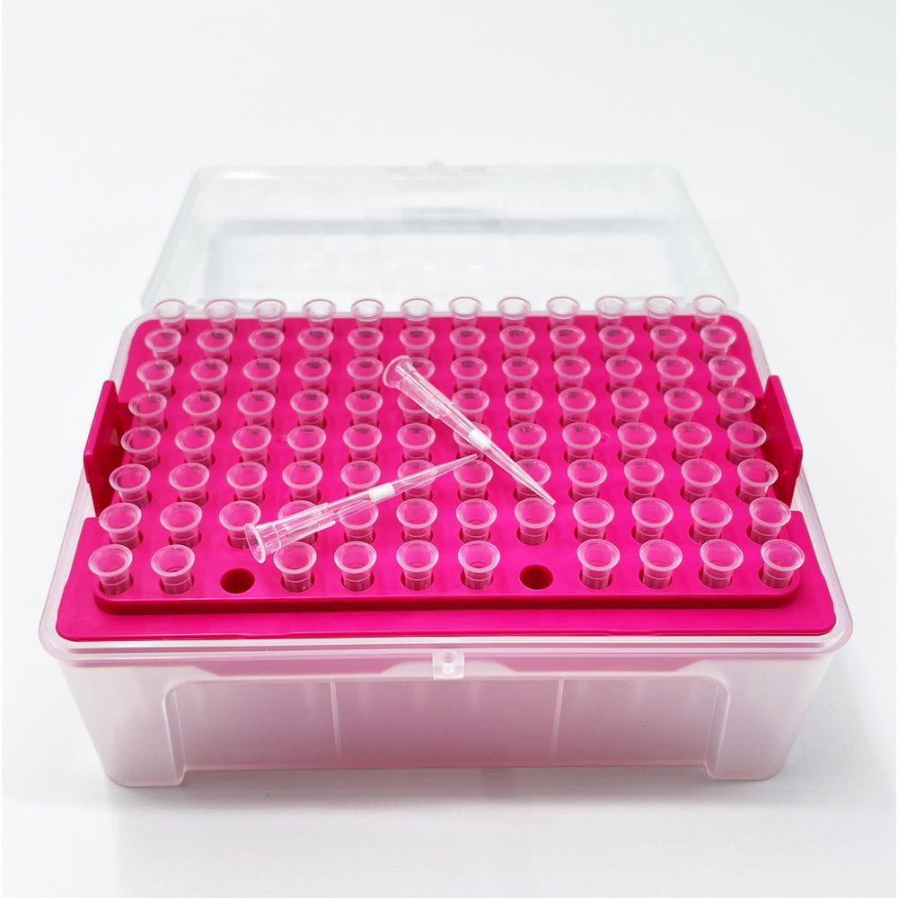 10 µL pipette tips with built-in filter, sterile, non-pyrogenic, and DNase/RNase free for contamination-free liquid handling. Supplied 96 tips per rack, ideal for molecular biology, PCR, and laboratory workflows requiring precision and sample integrity.